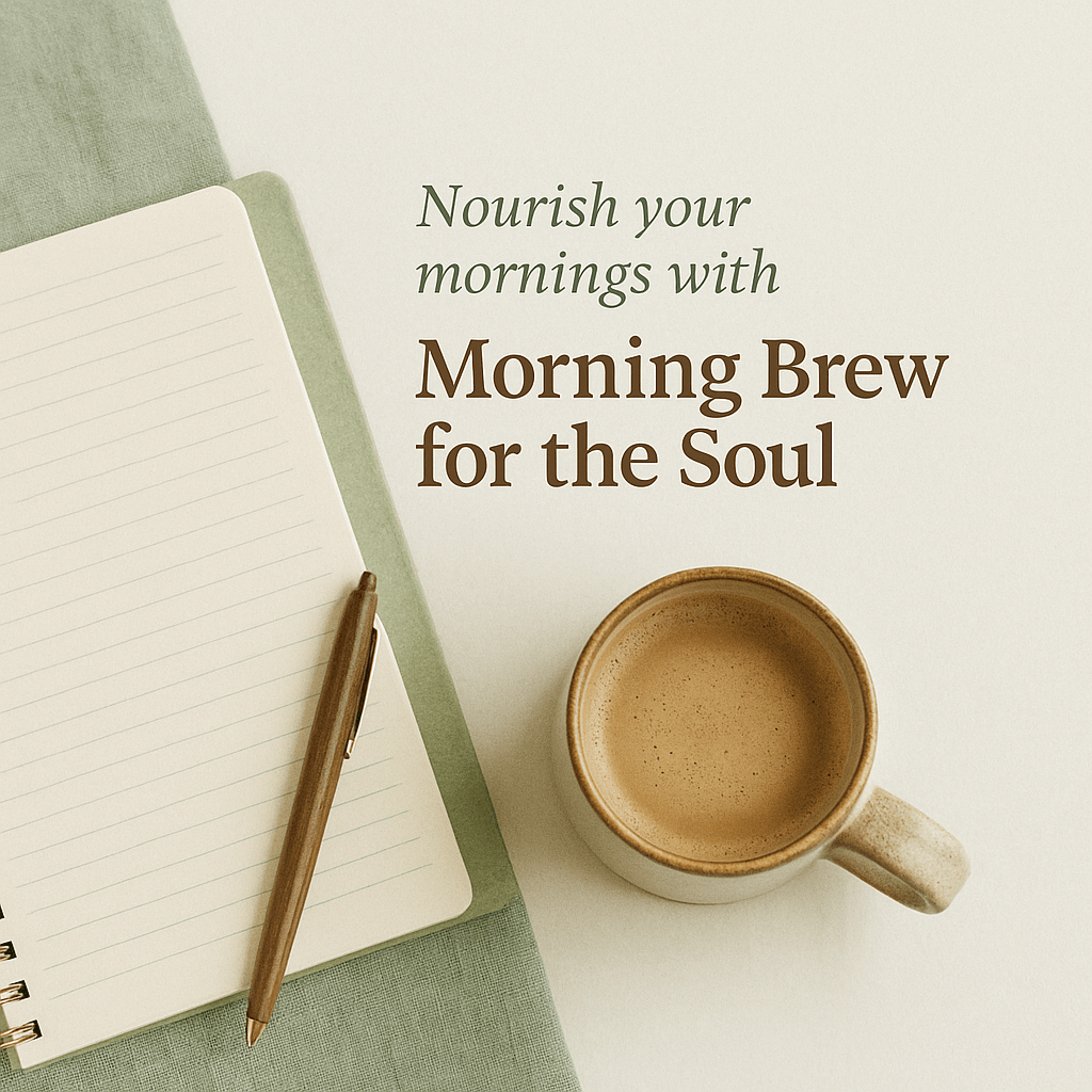 If you’ve ever felt the pull to turn your journaling habit into something more mindful, meaningful and soul-nourishing, I’ve created something just for you: Morning Brew for the Soul. It’s a gentle digital guide that walks you through a short and sweet journaling ritual each morning — the kind that sets you up for clarity, calm and connection. Read on, and if you’re feeling called to go deeper, you’ll find how to plug in at the end.